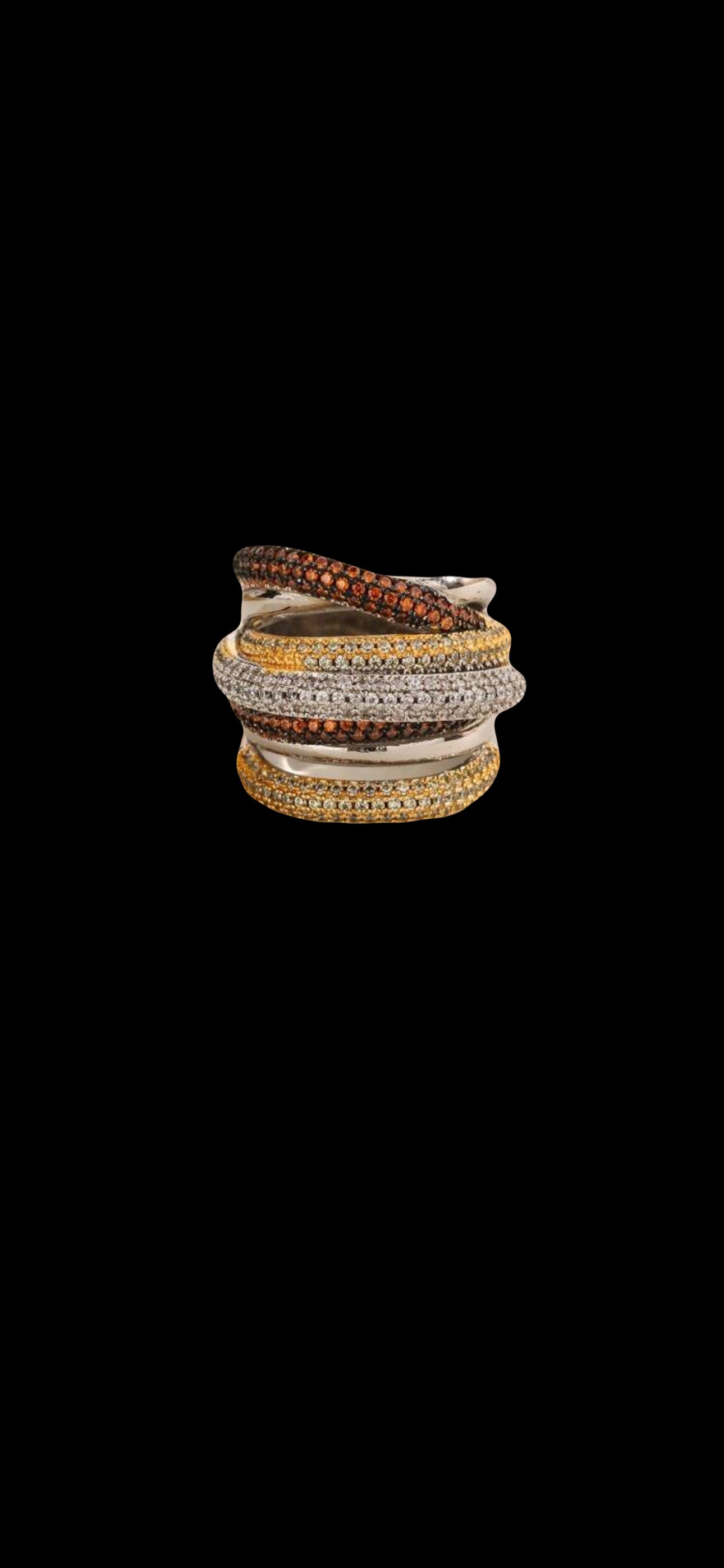 Turn every move into a statement with the HIM Multicolor Wrap Ring. Designed with rows of shimmering cubic zirconia in gold, silver, and deep bronze tones, this bold wrap style delivers luxury without limits. Its layered look gives the illusion of multiple stacked bands while staying sleek and comfortable to wear. Perfect for nights out, special occasions, or adding everyday shine, this piece is all about presence and power.